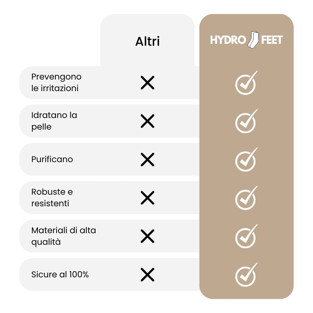 Da quando uso questi calzini, la mia pelle è migliorata notevolmente. Non solo la pelle è diventata più morbida e idratata, ma i calli che mi tormentavano sono scomparsi completamente. Non potrei essere più soddisfatta!